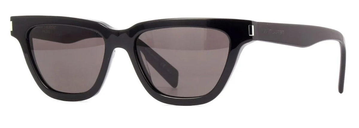 These Saint Laurent SL462 Sulpice sunglasses feature a sleek black cat-eye frame paired with dark grey smoke lenses, combining timeless style with contemporary edge. As seen on Hailey Bieber during her pregnancy announcement, they offer a sophisticated look perfect for making an elegant statement while providing comfortable sun protection.