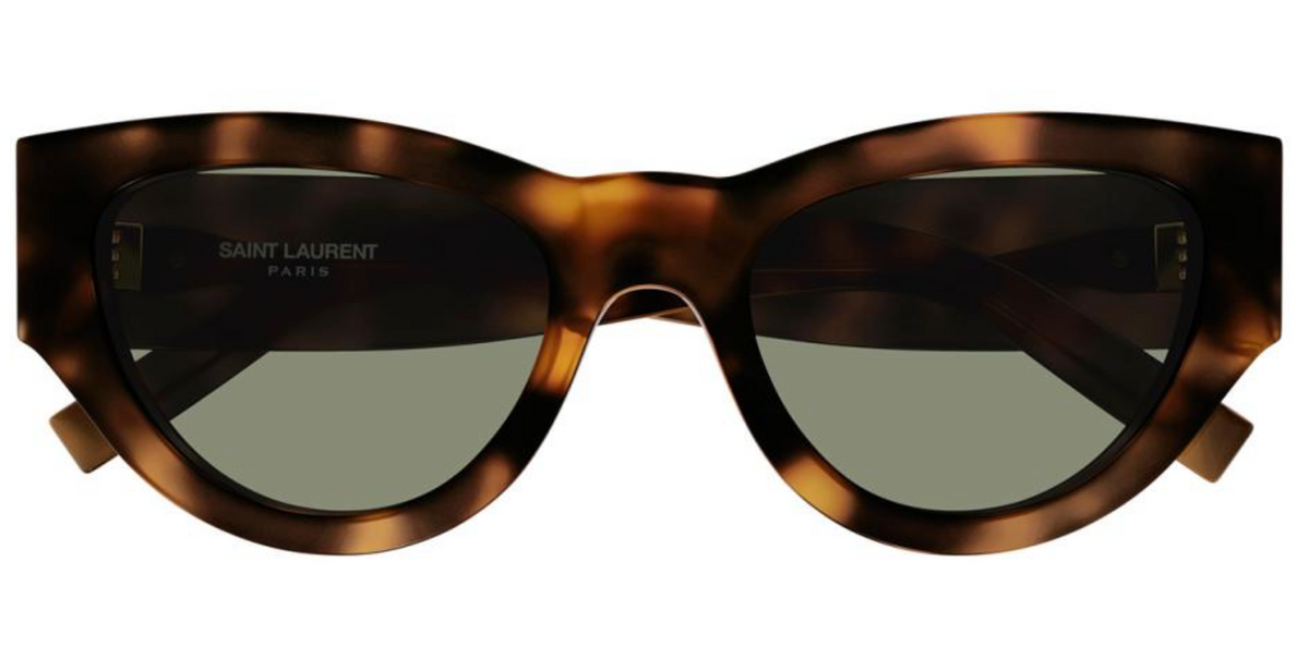 The Saint Laurent SL M94/F Asian Fit sunglasses are designed for women, featuring a sleek Havana acetate frame paired with green lenses. With a lens size of 53mm, arm length of 145mm, and a 19mm bridge, they offer a comfortable fit, especially suited for Asian facial contours. Crafted from high-quality acetate, these sophisticated sunglasses are available with prescription lenses and come with a one-year official Saint Laurent guarantee. Perfectly balancing style and practicality with a refined design.